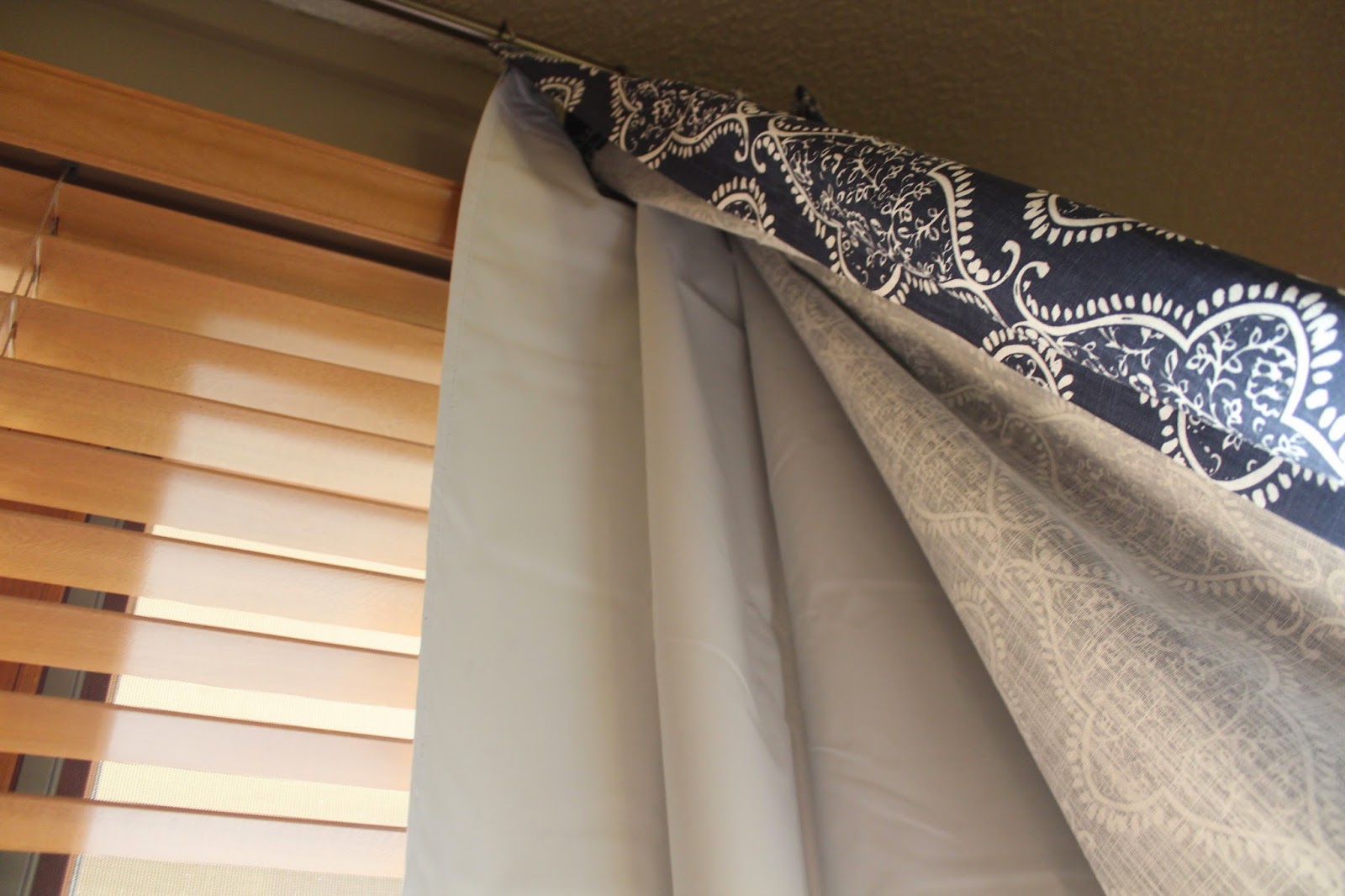 I stepped back and didn’t love how sheer they ended up looking when the sun was shining through. As you can see below, the deep navy color and beautiful pattern basically disappeared when the sun shone through.
