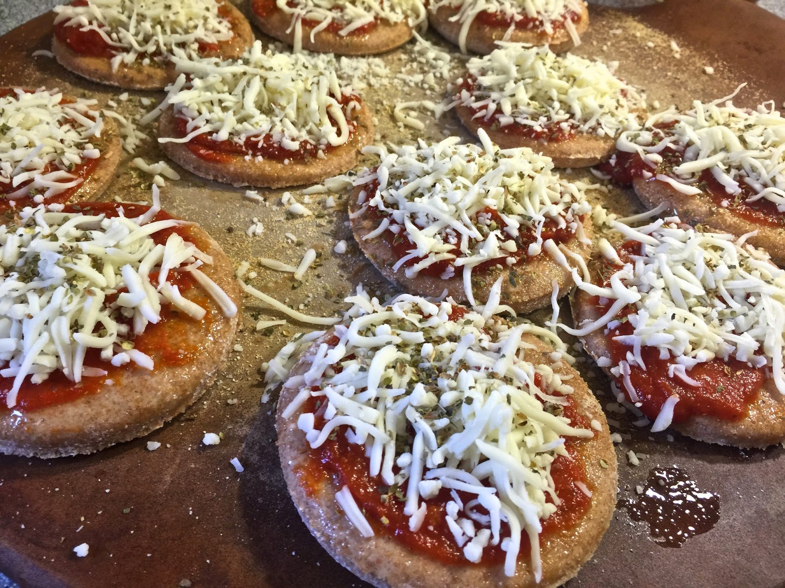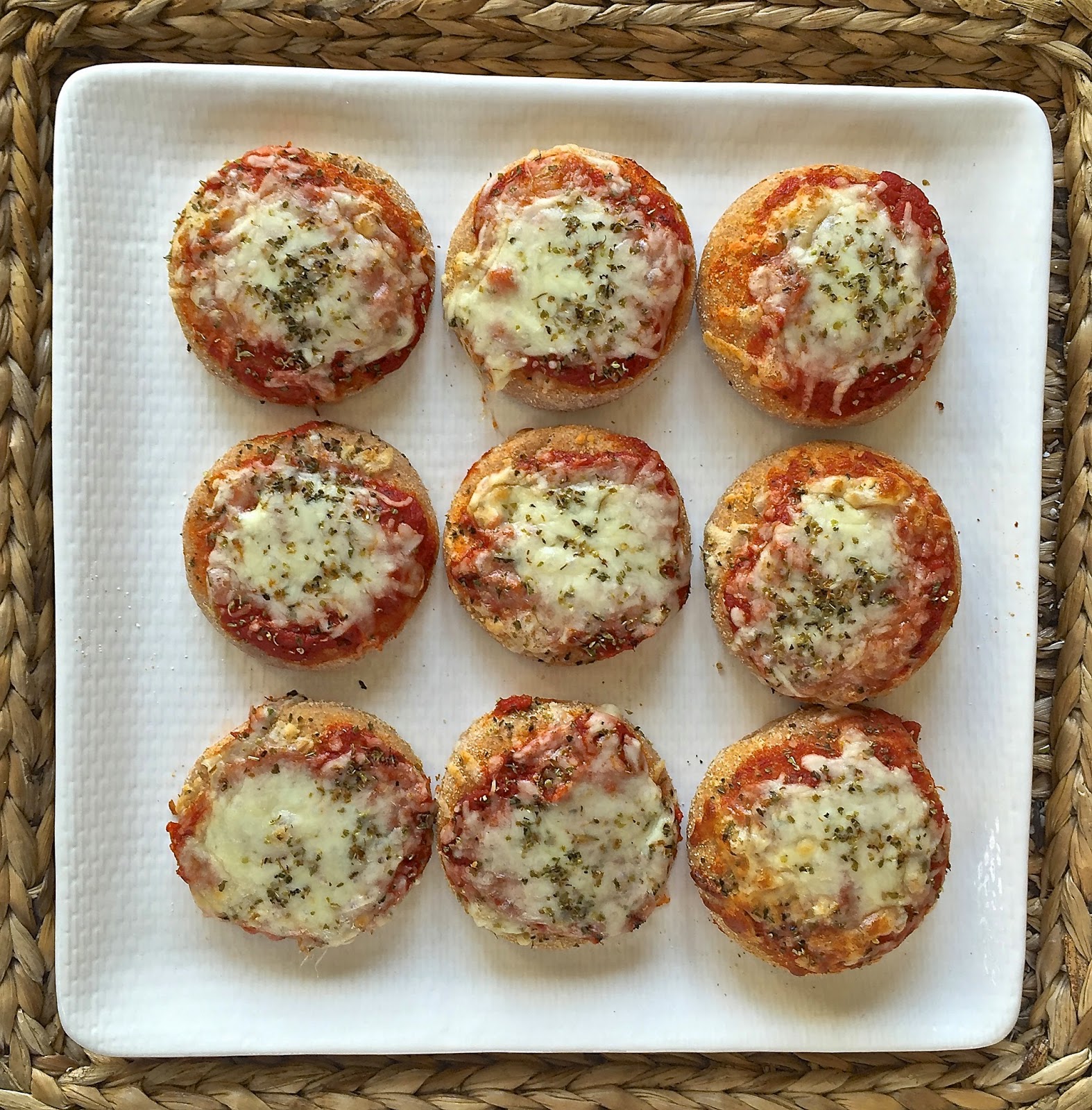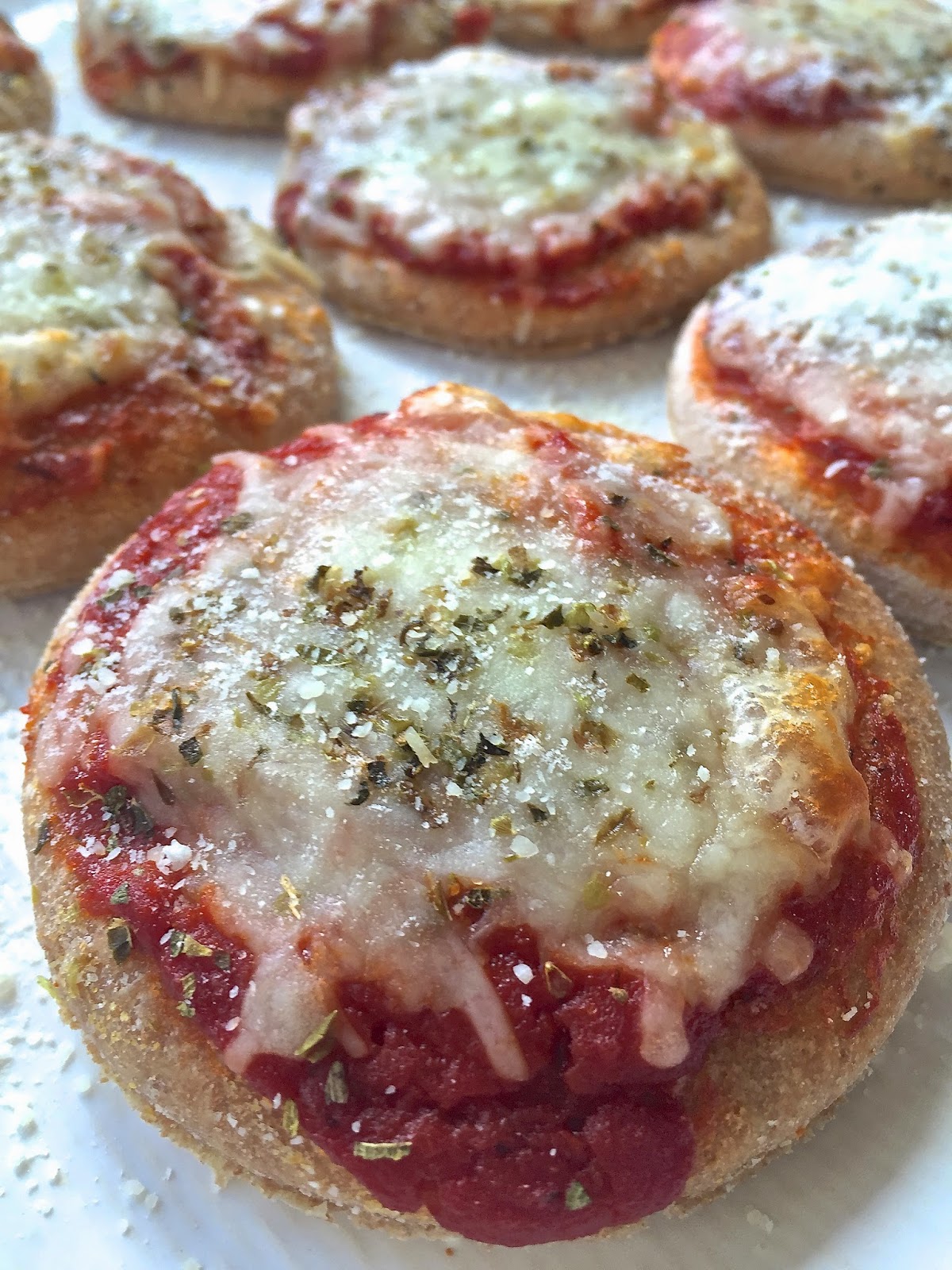 For dinner last night I wanted to try my hand at mini pizzas. Not only were they easy to make, but they were delicious! Jamie may or may not have eaten a half dozen of them, and my not-so-great little eater also surprised us by eating all but one bite that she wanted to share with Teddy (sigh).
