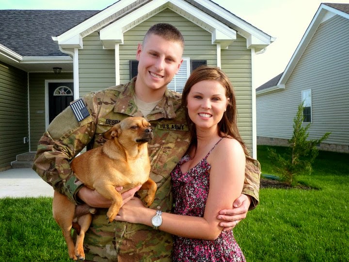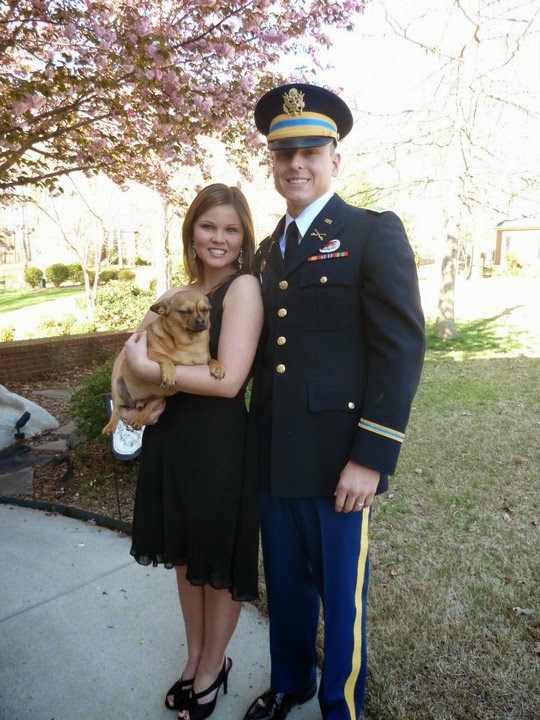 We adopted Teddy on a whim on a random Saturday morning two weeks before Jamie left for Afghanistan the first time. He was sitting in a crate outside of PetCo with MARF (Madison Animal Rescue Foundation) in my parent’s hometown, and we walked by and couldn’t help but squeal about how cute (and awkward looking) he was. The volunteer let him out of his crate, and he immediately cuddled up in my lap, leaving my heart in a puddle right there on the sidewalk. Jamie sat down across from me, and he went straight to his lap as well. We leashed him up and walked him around the store, and I actually had a lump in my throat and tears in my eyes because I didn’t know how we could leave the store without him; Jamie didn’t either. We weren’t expecting to get a dog so soon with a deployment around the corner and the closing of our first home the following week, but we just knew he was ours. A few minutes later we found ourselves paying the $150 adoption fee, picking out food and a new leash, and walking back to our car with a new family member.