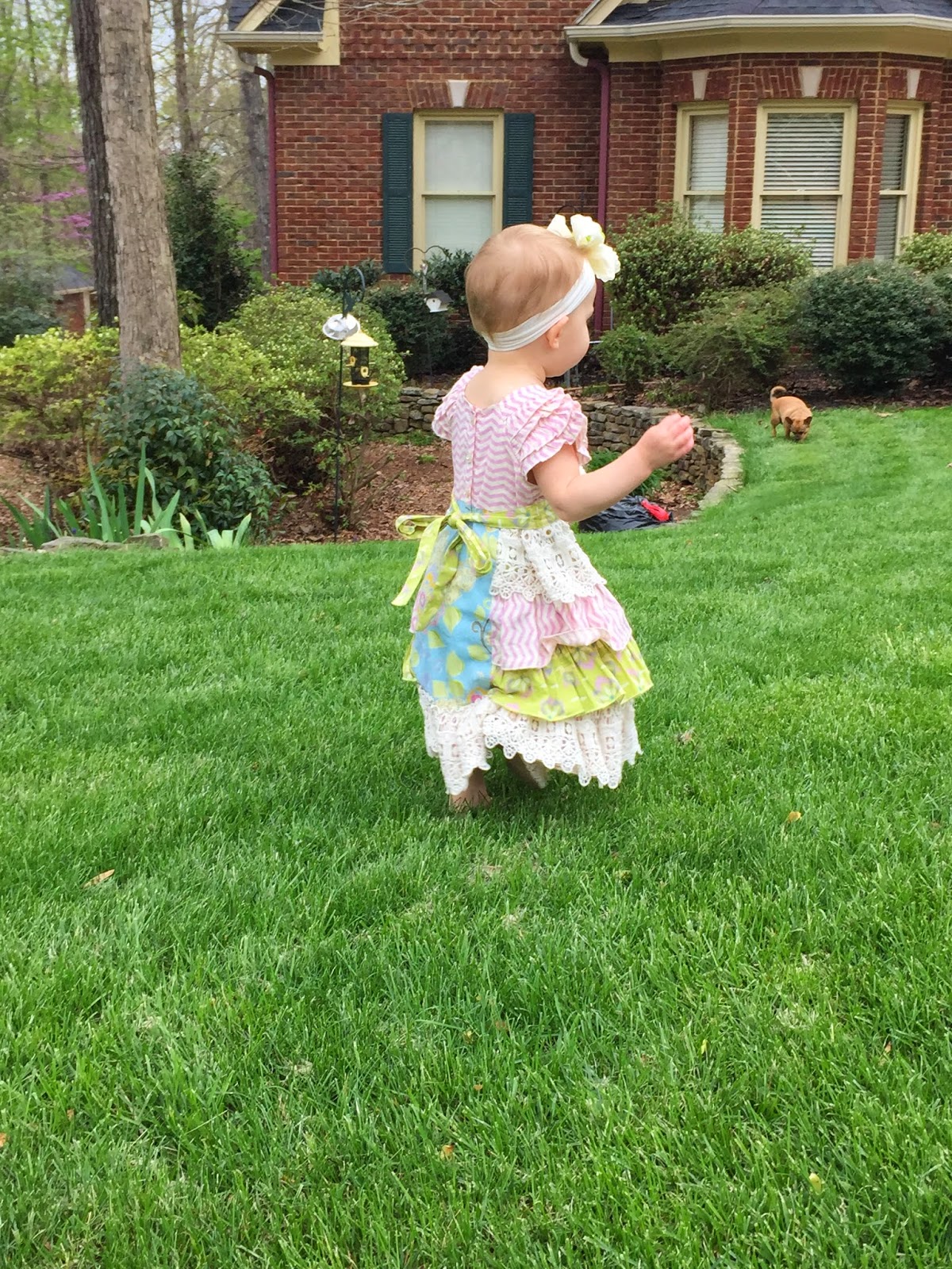 All of the eggs were blue which made the egg hunt really easy for Hadley to get in to. It was a blast to watch her scan the yard for eggs, spot an egg, and go sprinting!