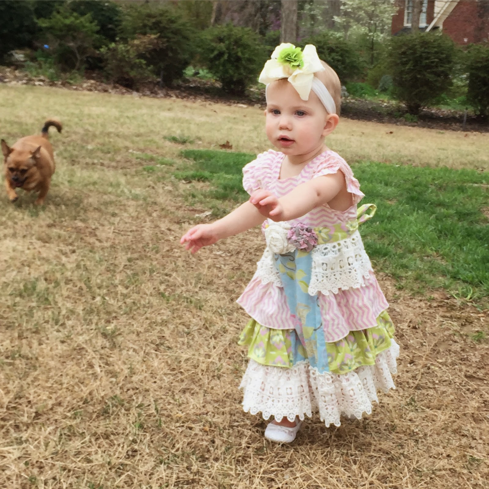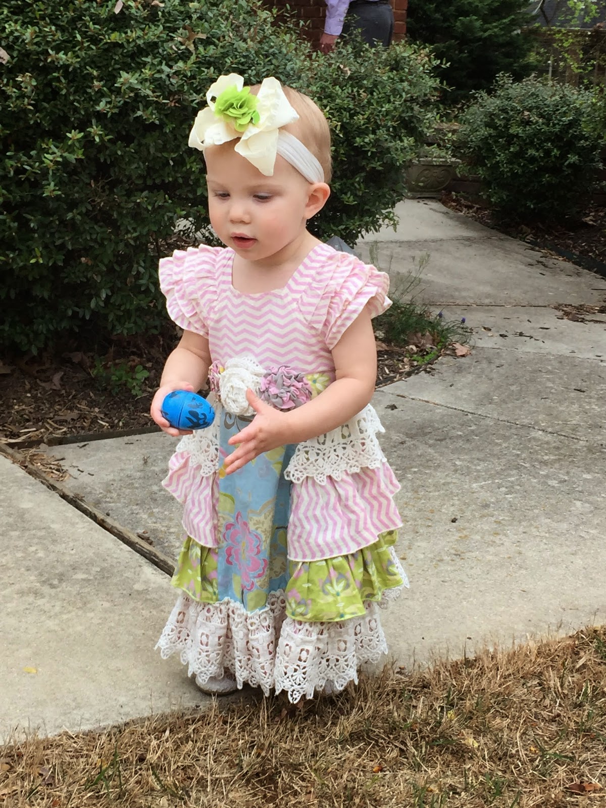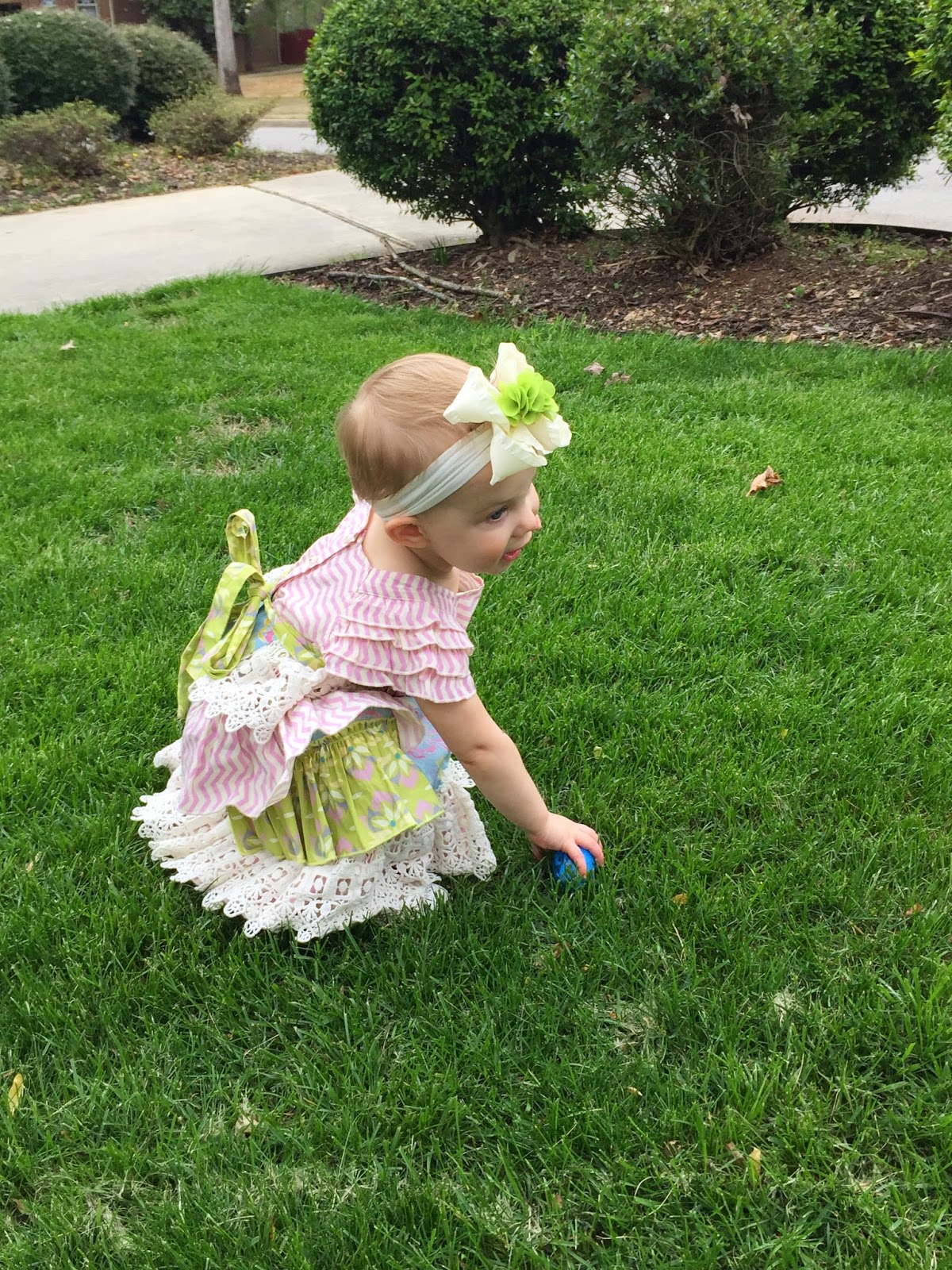 All of the eggs were blue which made the egg hunt really easy for Hadley to get in to. It was a blast to watch her scan the yard for eggs, spot an egg, and go sprinting!