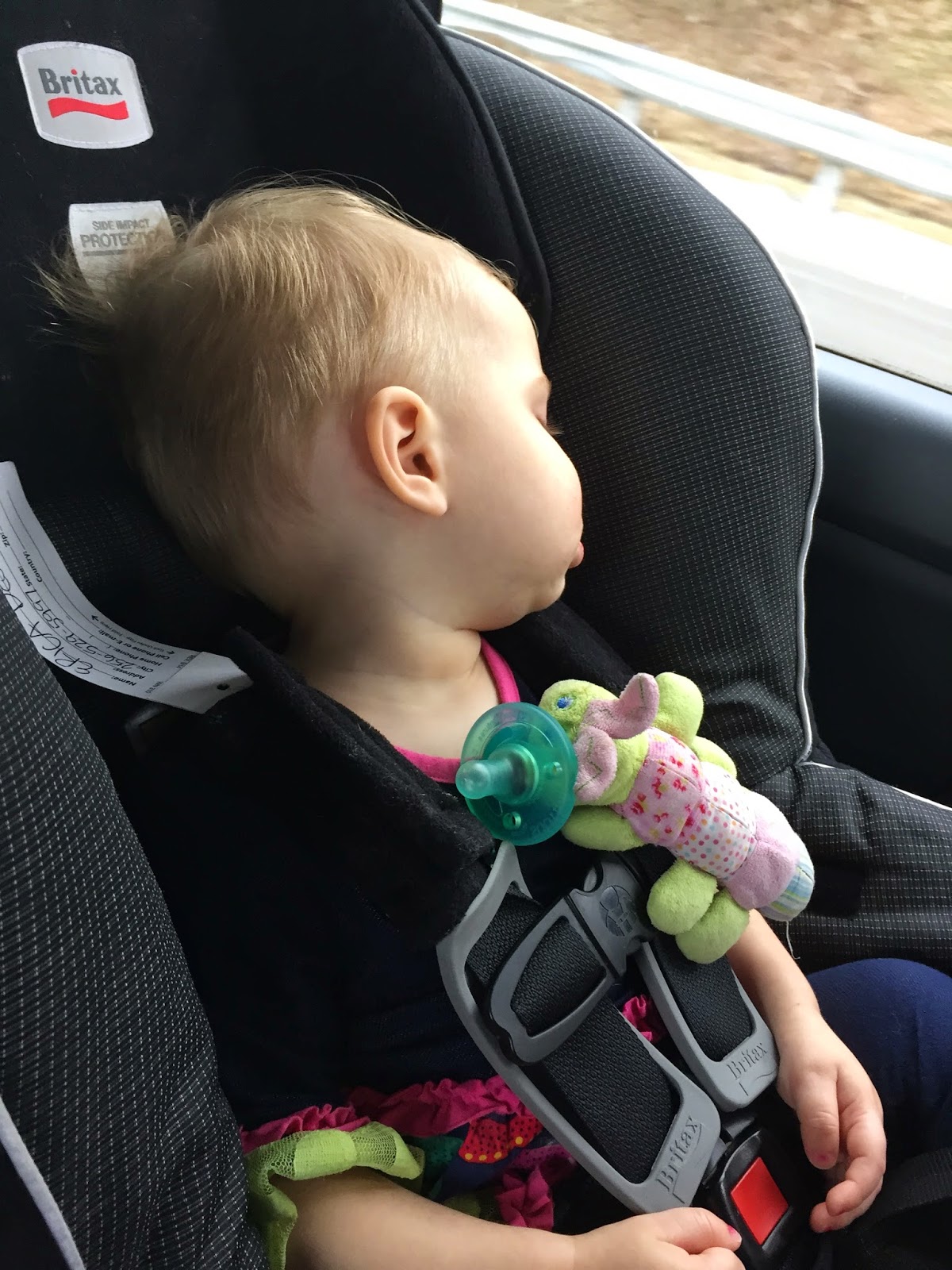Hadley hung out in the front seat playing with my parking ticket (which I didn’t know about) while I hooked her carseat back in. Once I drove off to pay for parking, I realized my ticket had gone missing somewhere in the car and absolutely could not find it. Losing the ticket cost me about 10 extra minutes with the parking attendant, but by 8 p.m. we were on the road back to Alabama. I’d picked Hadley up some milk in the airport for her bottle, so she drank that in her carseat and then slept the whole two hour drive.