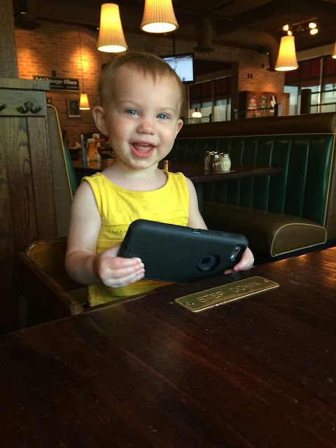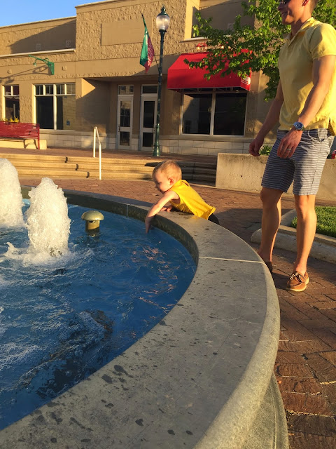 After we ate at the hibachi restaurant, we ran around The Legends shopping center in Kansas City with my in-laws for about an hour. She is like a magnet to water when she sees it!