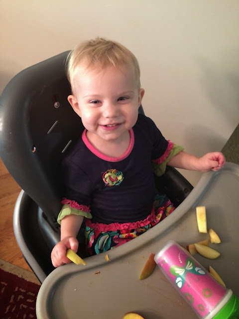 We’re obsessed with apples right now. Saying “app-al”, eating apples, when we say apple, everything. I was singing a silly song to her about apples, and she was giggling up a storm.
