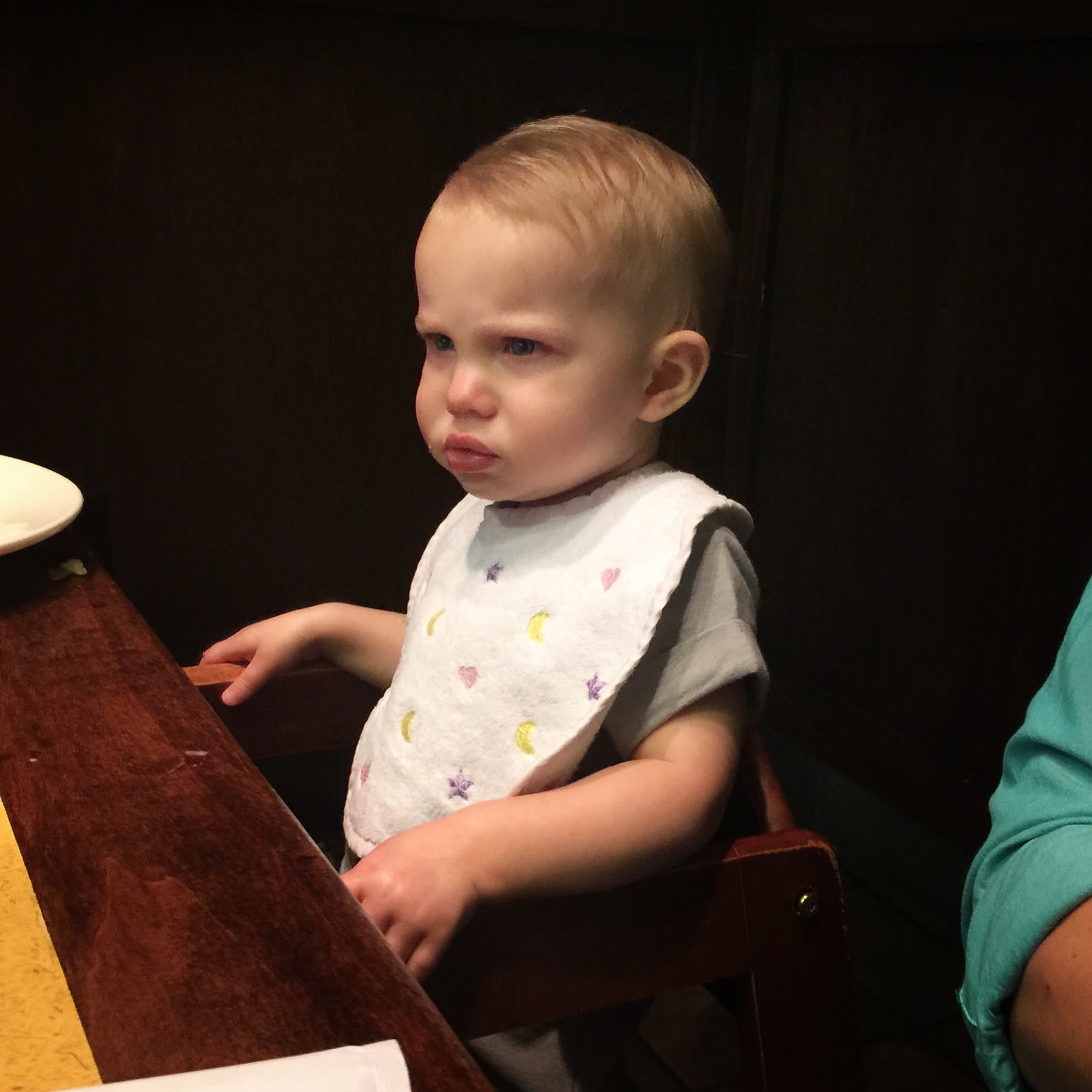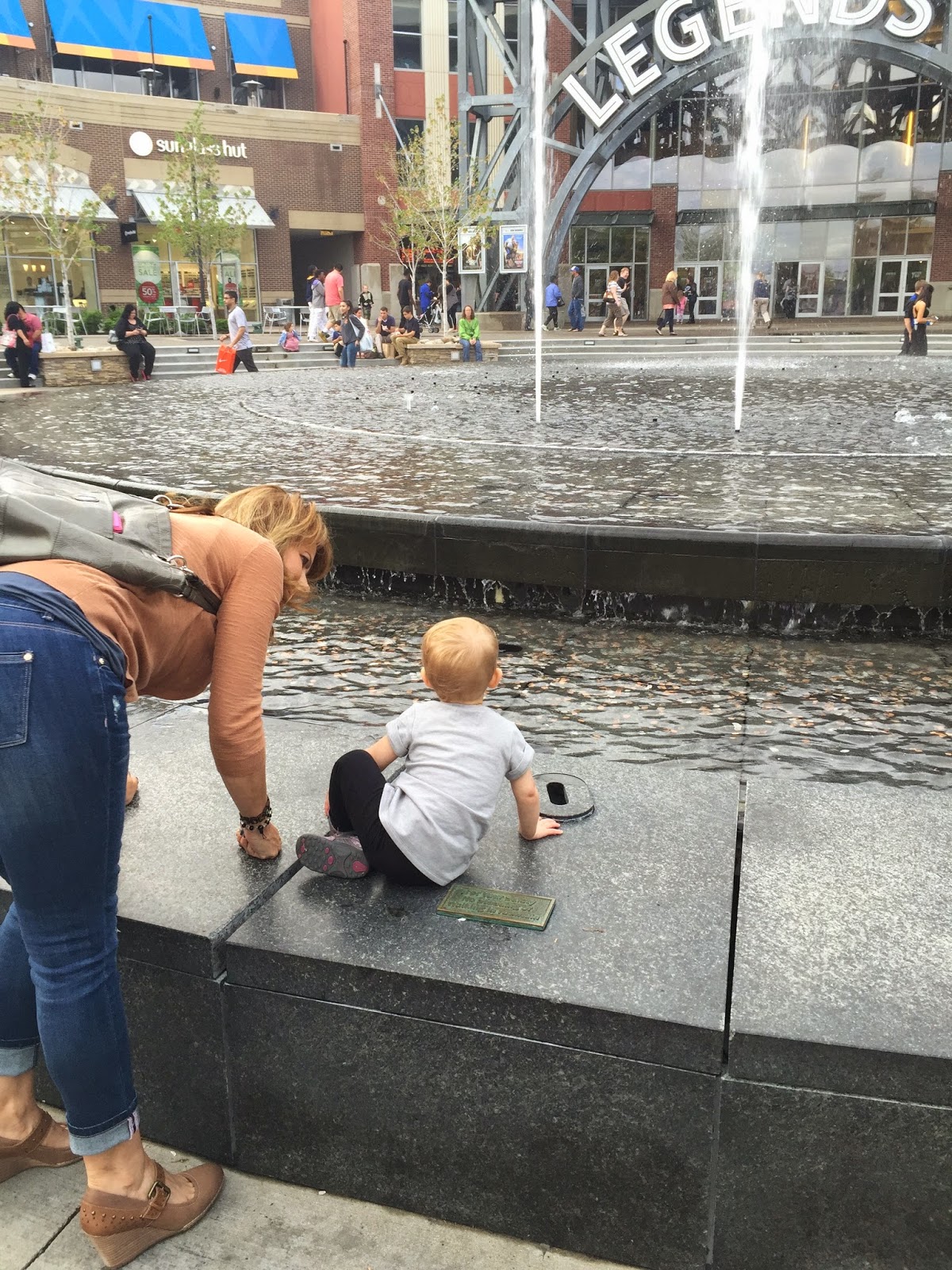 After we ate at the hibachi restaurant, we ran around The Legends shopping center in Kansas City with my in-laws for about an hour. She is like a magnet to water when she sees it!