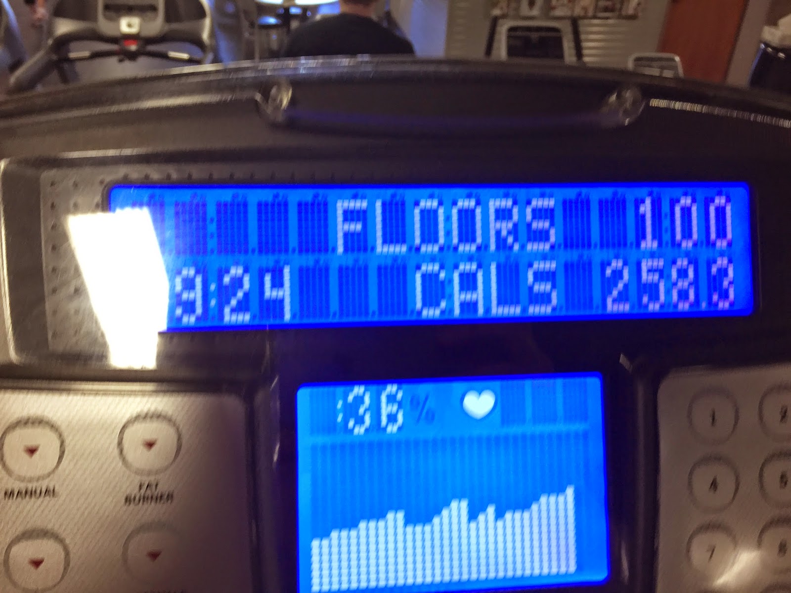 I swear I don’t usually take pictures at the gym, so it’s funny that I have two in this one post. Jamie sent me a text yesterday asking what I was up to, so I snapped this picture to send to him. I’ve never hit 100 floors before on the stair master, so I was feeling pretty good (mentally, not physically). Ha!
