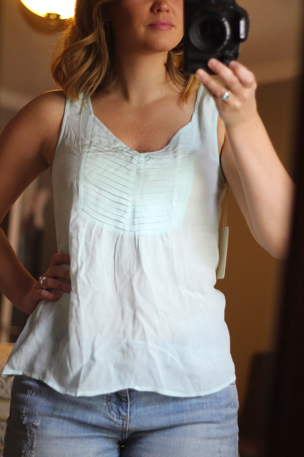 I like this next shirt better on and in pictures than I did when I first grabbed it out of the box. It’s super wrinkly, but I’m wondering now after looking at this picture if it’s supposed to be that way. I absolutely love the cut and fit of it, but I don’t see this one washing and wearing well at all. If it was much cheaper, than maybe. Not a keeper.