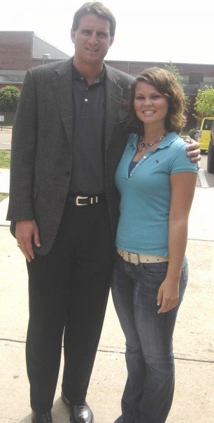 Funny story about this picture. 🙂 During the spring semester of my senior year of high school I was an office aide, and a mom came into the attendance office to check out her son. She asked the attendance lady if Alabama head football coach Mike Shula had a recruiting visit scheduled, but the attendance lady told her “No, we definitely would have known about that!”. The mom went on and on about how she swore it was him in the parking lot, so I bolted out of the office and down to my journalism teacher’s classroom. I interrupted her english class, grabbed the camera and journalism badge, and went on a hunt. I peeked into the head football coach’s office window, and there he was! I waited outside for a few minutes for them to come out, and the principal and assistant principal were with him. I asked if I could ask him a couple questions for the school paper and eventually snuck in a personal picture with him. I remember it like yesterday! At this point I already knew I was going to attend UA in a few months, so meeting Coach Shula was incredible!