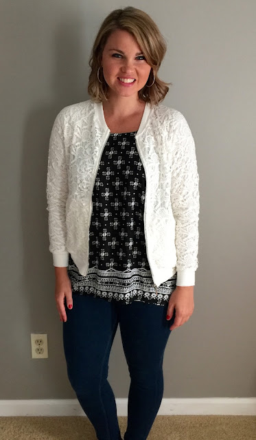 This fix almost didn’t happen because I was thisclose to canceling it; I’d depleted my shopping budget on clothing for BlogHer and have plenty of clothes to get me through summer. I quickly pushed those crazy thoughts aside though because you all know that I love getting this little piece of happy mail every month and decided to go on with the show and just request pieces for fall. Here’s what my stylist boxed up for me this month!