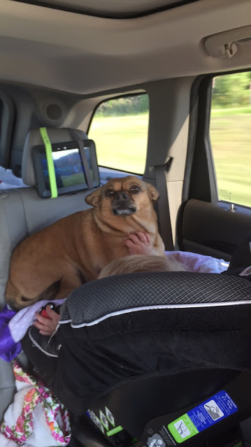 This is my absolute favorite picture from this Slice of Life post. On our way home from Kansas City yesterday we heard Hadley start screaming, and this is what I saw when I turned around! Teddy had never done this before, but for some reason he got a wild hair and decided to climb in Hadley’s lap and block her view of Frozen. He did it again about five minutes later. We were dying laughing! So funny! We think he wanted to snuggle on her blanket.