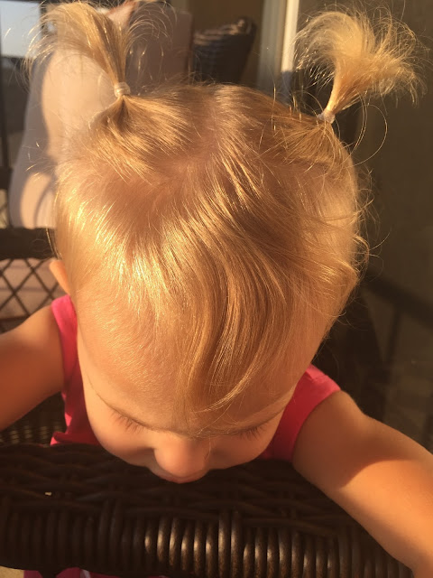 Her hair is growing and fast! Finally! Jamie and I were dying over her first pigtails.