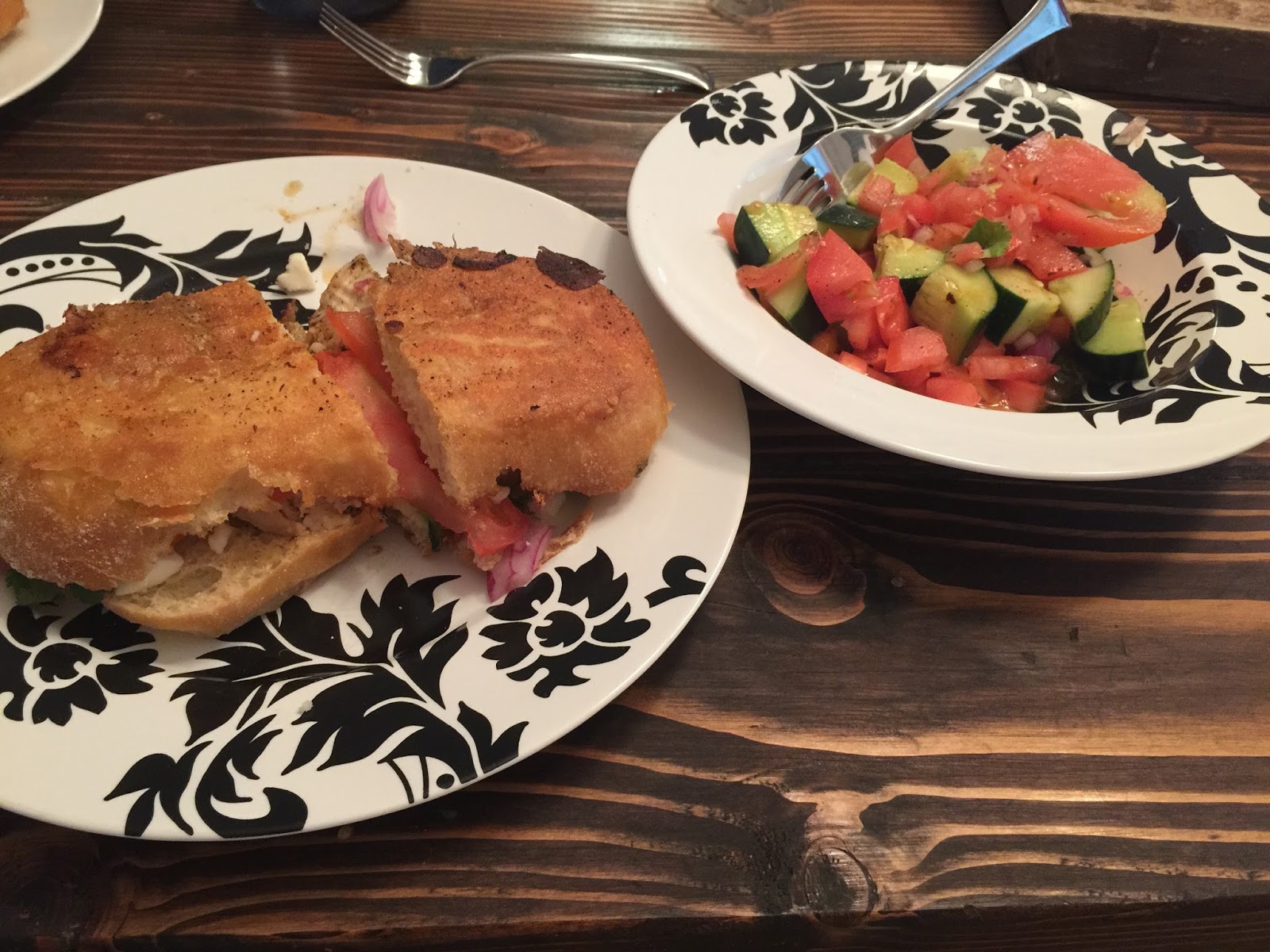Have you ever tried the food delivery service Blue Apron? We tried it for two weeks and loved five out of six of the meals. We’re not going to continue right now because I can make our own meals cheaper, but it was definitely something fun to try and something we’re open to doing again. This was our favorite meal: a Mexican chicken torta sandwich with a cucumber, tomato, red onion, and apple cider vinaigrette.