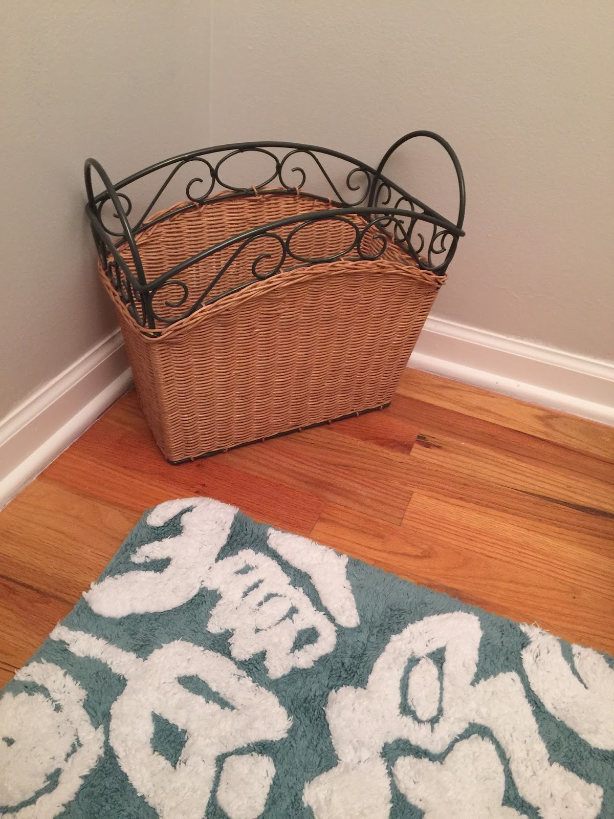 During nap time a few days later I rummaged through my spray paint collection and thought that a pop of yellow would be a fun edition to the bathroom. I love Rust-Oleum spray paints!