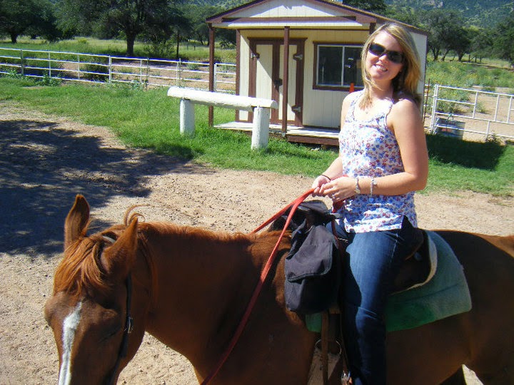 Back to the weekend! Our highlight was an hour-long guided horseback ride yesterday at the stables on Fort Huachuca. I’d been to these stables back in 2010 when I visited Jamie out here during his BOLC course, and I’d looked forward to going riding again at some point while we’re out here. Below are a couple of pictures from September 2010 right after we both graduated from college.