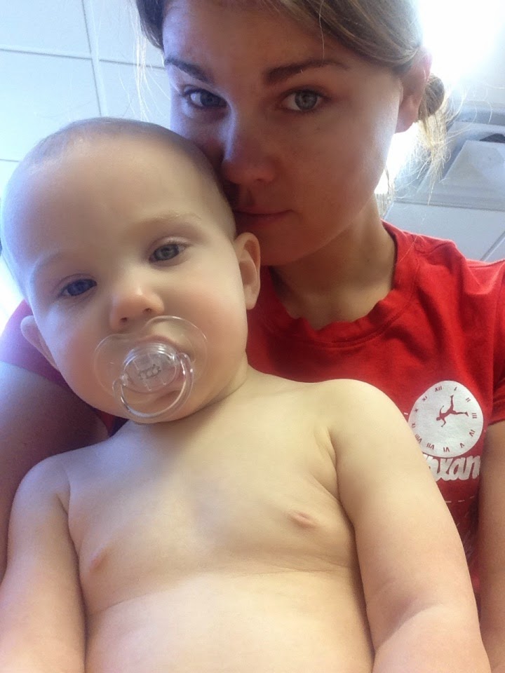 On Thursday, we were at the Fort Riley ER bright and early with Hadley. She’d been running an on-and-off 100-100.7 fever for five days, and by Thursday her stomach was going bananas. After about two hours in the waiting room, I smelled something a little funky and went to change Hadley. Five minutes later I walked back into the waiting room with a baby wearing nothing but a diaper.