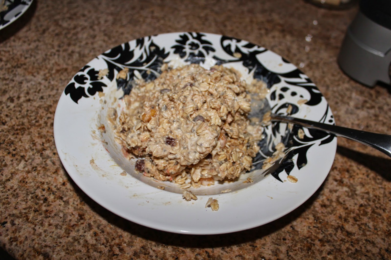 While dessert was freezing, I mixed up some breakfast for J (I told you that I was practically bouncing off the walls for no reason). I made him a hearty bowl of Peanut Butter “Cookie Dough” overnight oats which I watched him devour this morning.