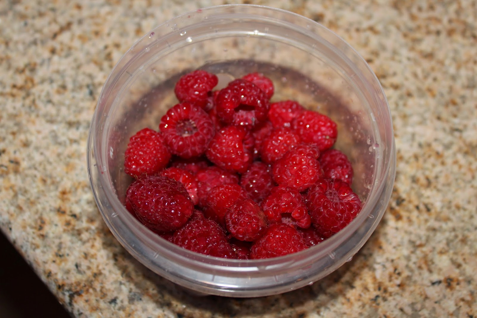 For “dessert” I treated myself to a whole bunch of fresh raspberries.
