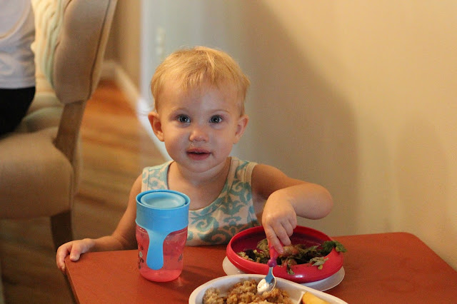 Once Hadley finished her breakfast she climbed on the bench with us until we were done, too.